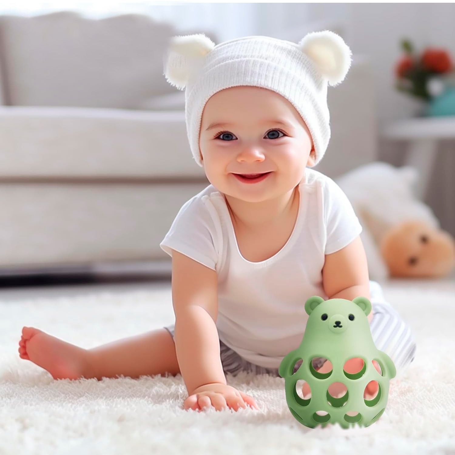 El Juguete Mordedor Oso de Silicona es un innovador juguete mordedor de silicona diseñado para estimular los sentidos de tu bebé y acompañarlo en su desarrollo. Con un diseño en forma de oso y un cuerpo esférico con orificios, este juguete multiusos ofrece diversión, alivio para la dentición y funcionalidad adicional como dispensador de snacks o sonajero.