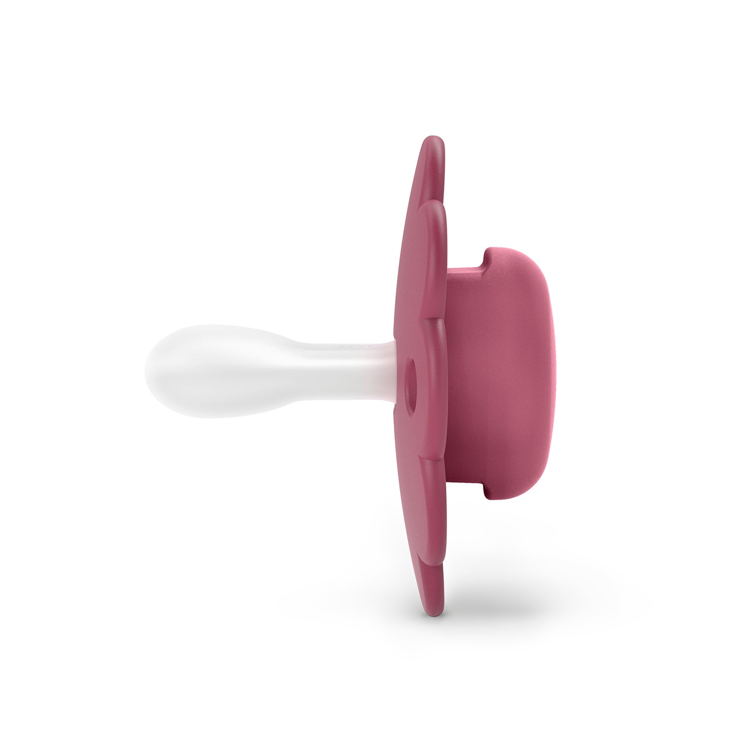 Escudo Redondo Ergonómico y Convexo: Diseñado para evitar que choque contra la nariz del bebé y permitir la libre circulación del aire entre el chupete y las fosas nasales, mejorando la comodidad del bebé.