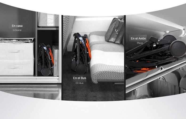- Compacto: Tamaño ultra compacto después de plegado, compatible con cabina de avión.