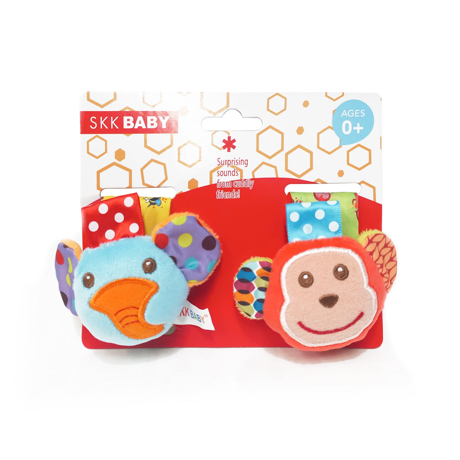 ¡Descubre nuestras Pulseras Sensoriales de Animales, diseñadas para entretener y estimular a tu bebé! Este pack incluye dos muñecas con diseños adorables: un elefante y un mono, perfectas para bebés de todas las edades.